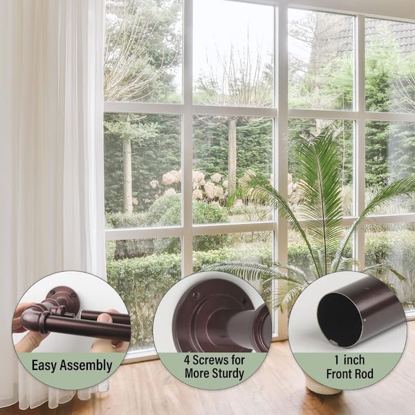 1 inch Pipe Double Blackout Curtain Rod 120-170 inch-Bronze (3pcs)