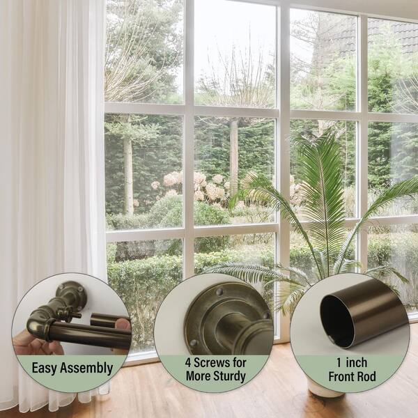 1 inch Pipe Double Blackout Curtain Rod 28-48 inch-Antique Brass