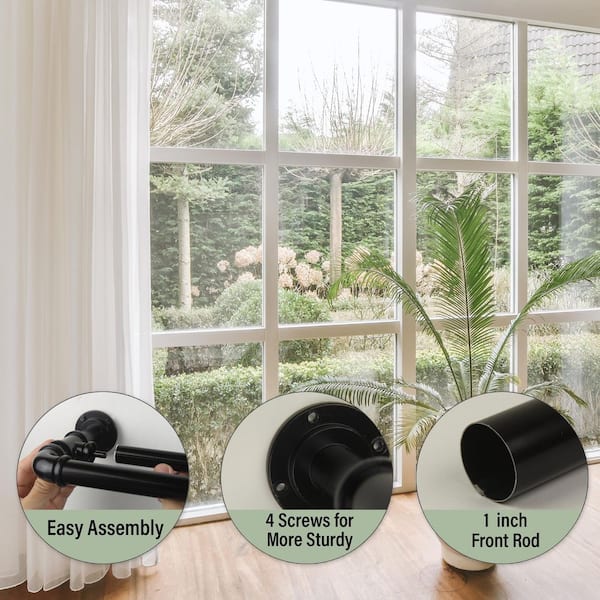 1 inch Pipe Double Blackout Curtain Rod 48-84 inch-Black