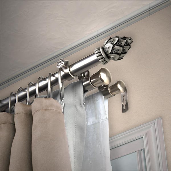 13/16" Dia Adjustable 120" to 170" Triple Curtain Rod in Satin Nickel with Jace Finials