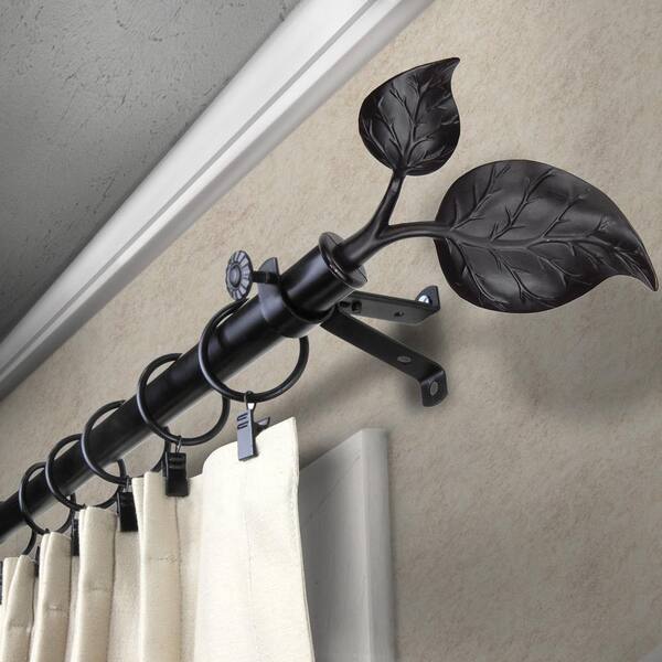13/16" Dia Adjustable 20"-36", 38"-72" Bay Window Curtain Rod with Batony Finials in Black