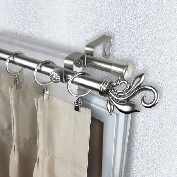 13/16" Dia Adjustable 20"-36", 38"-72" Bay Window Double Curtain Rod with Andrea Finials in Satin Nickel