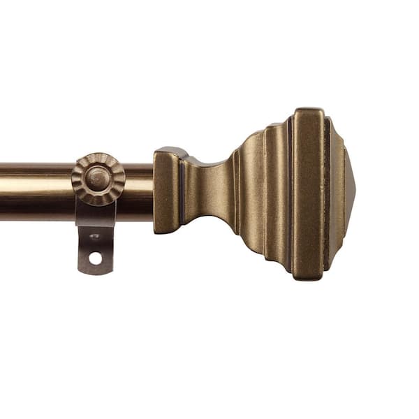 13/16" Dia Adjustable 28-48" Single Curtain Rod in Antique Brass with Saymna Finials