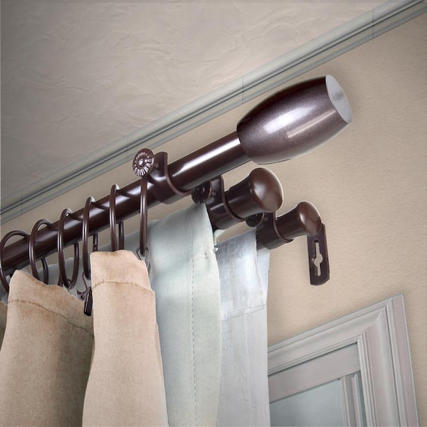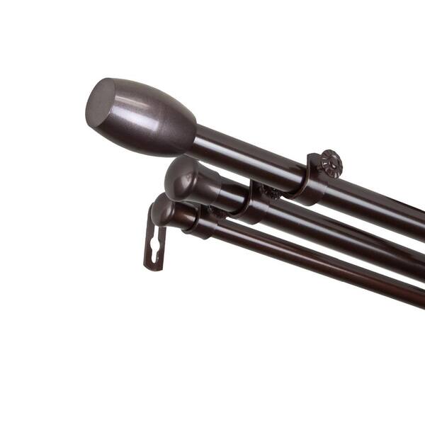 13/16" Dia Adjustable 28" to 48" Triple Curtain Rod in Cocoa with Evie Finials
