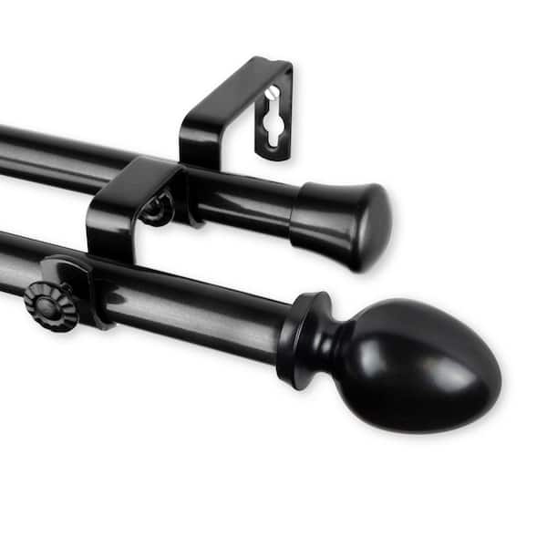 13/16" Dia Adjustable 48-84" Double Curtain Rod in Black with Tomesha Finials