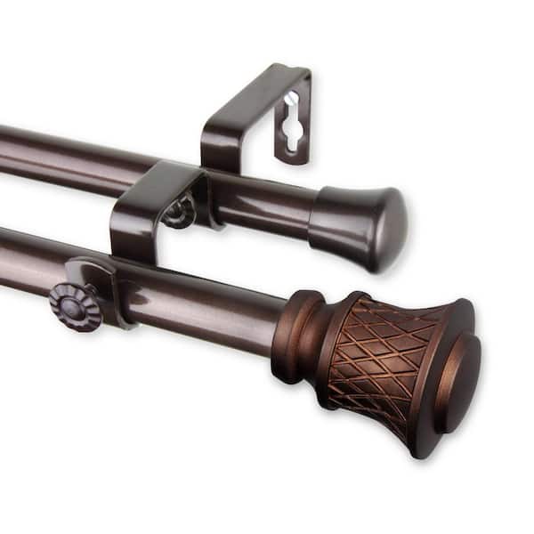 13/16" Dia Adjustable 48-84" Double Curtain Rod in Cocoa with Neema Finials