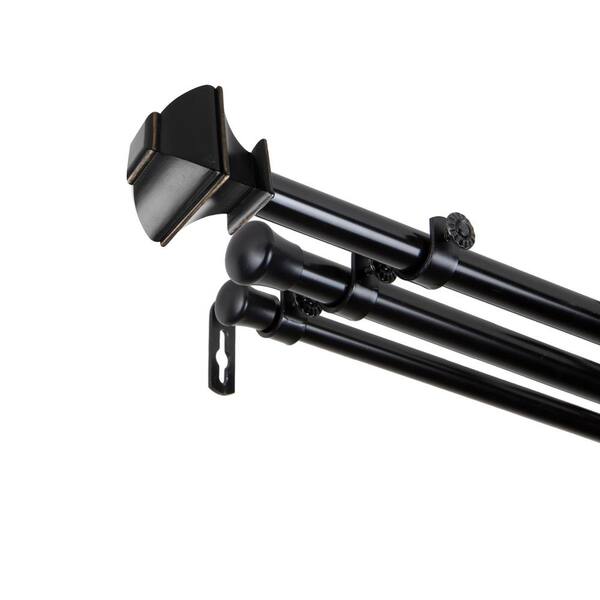 13/16" Dia Adjustable 48" to 84" Triple Curtain Rod in Black with Julianne Finials