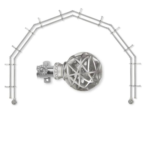 13/16" Dia Adjustable 6-Sided Double Bay Window Curtain Rod 28 to 48" (each side) with London Finials in Satin Nickel