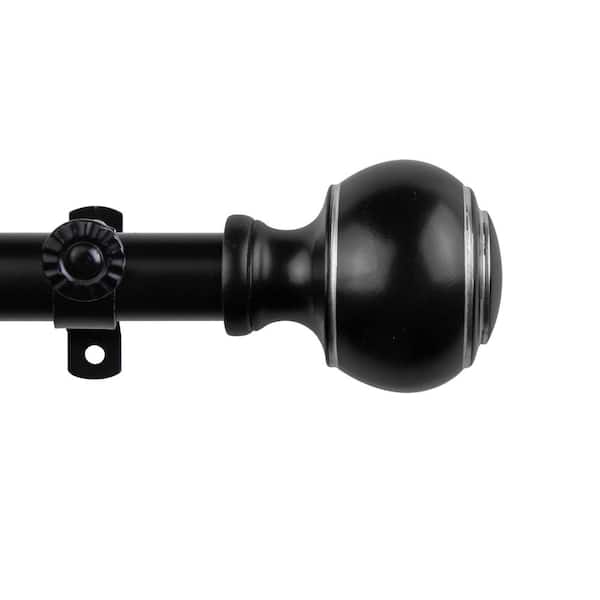 13/16" Dia Adjustable 66-120" Single Curtain Rod in Black with Miyaki Finials
