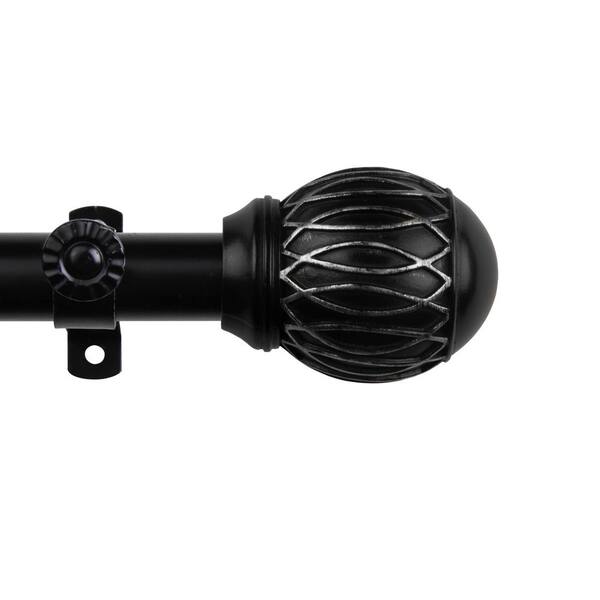 13/16" Dia Adjustable 66-120" Single Curtain Rod in Black with Yvaine Finials