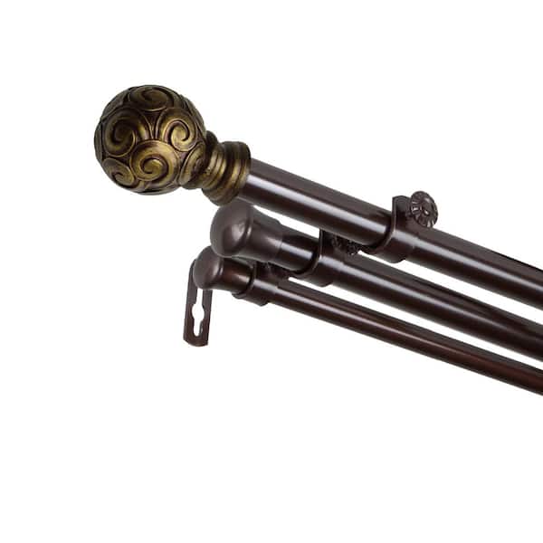 13/16" Dia Adjustable 66" to 120" Triple Curtain Rod in Cocoa with Irma Finials