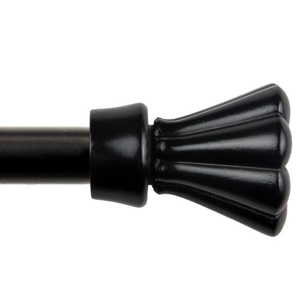 5/8" Dia Adjustable 18-28" Single Curtain Rod in Black with Lucas Finials