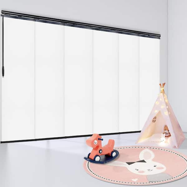 Alabaster 70 in. to 130 in. W x 94 in. L Adjustable 6-Panel, Black Single Rail Panel Track with 23.5 in. Slates