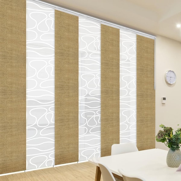 Golden Swirl 110 in. - 153 in. W x 94 in. L Adjustable 7-Panel Satin Nickel Single Rail Panel Track with 23.5 in. Slates