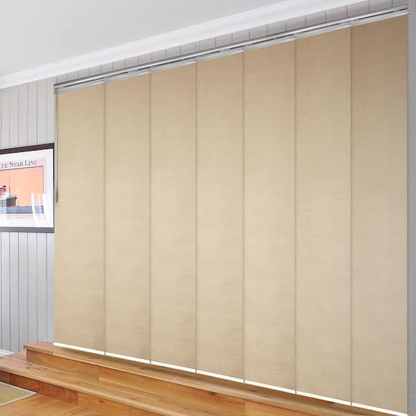 Linen 110 in. - 153 in. W x 116 in. L Adjustable 7- Panel Satin Nickel Single Rail Panel Track with 23.5 in. Slates