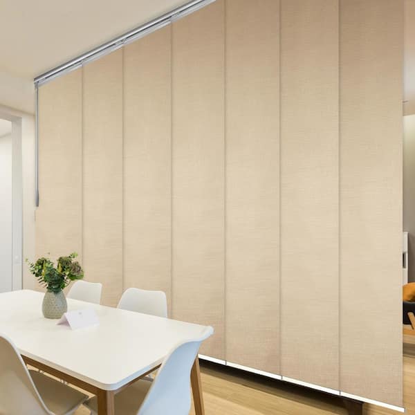 Linen 110 in. - 153 in. W x 94 in. L Adjustable 7- Panel in Satin Nickel Single Rail Panel Track with 23.5 in. Slates