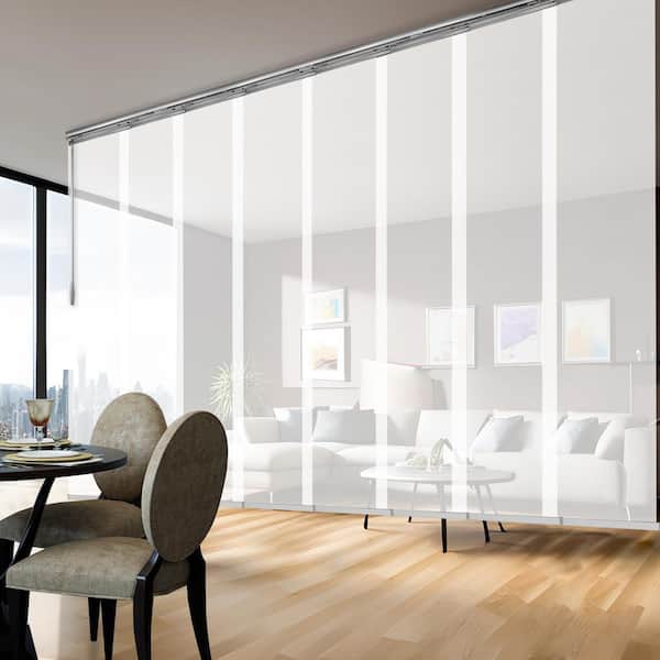 Pearly White 130 in.-175 in. W x 94 in. L Adjustable 8-Panel Satin Nickel Double Rail Panel Track with 23.5 in. Slates