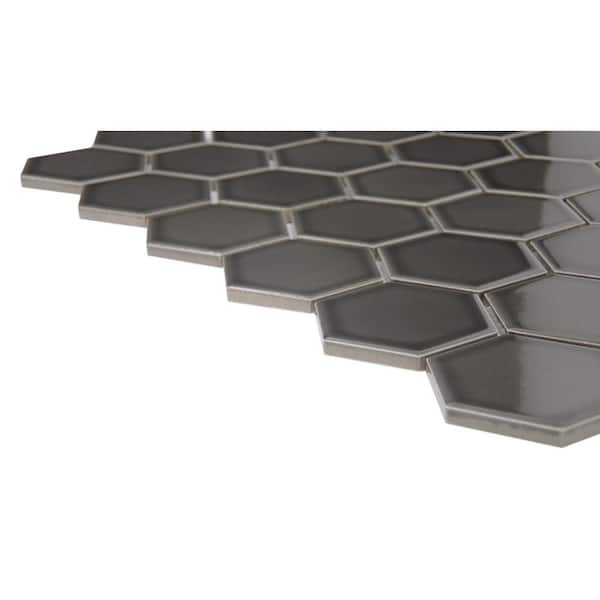 Savvy Pewter 11 in. x 12 in. Hexagon Glossy Porcelain Mosaic Floor and Wall Tile (0.937 sq. ft./Case, 1 pc)