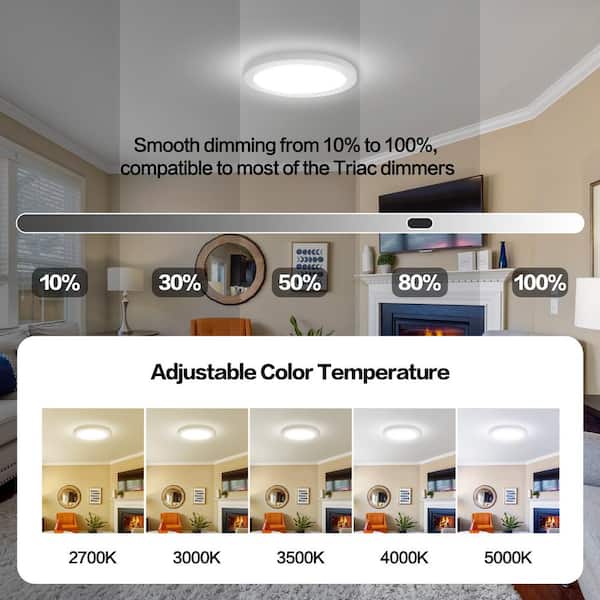 11 in. White Slim Flush Mount Integrated LED Ceiling Light Dimmable Round Ultra-Thin Fixture CCT Selectable (12-Pack)