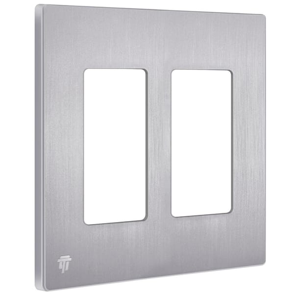 Elite 4.68 in. H x 4.73 in. L, Brushed Silver 2-Gang Screwless Decorator Wall Plate