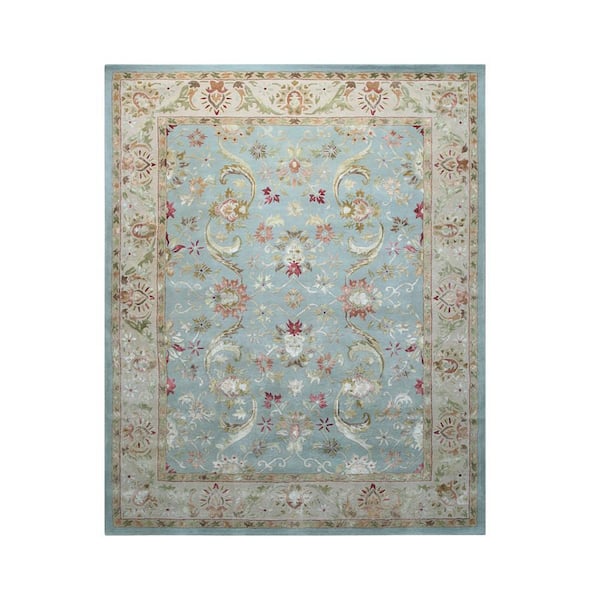 Blue 8 ft. x 10 ft. Hand-Tufted Wool Classic Geometric Rug Area Rug