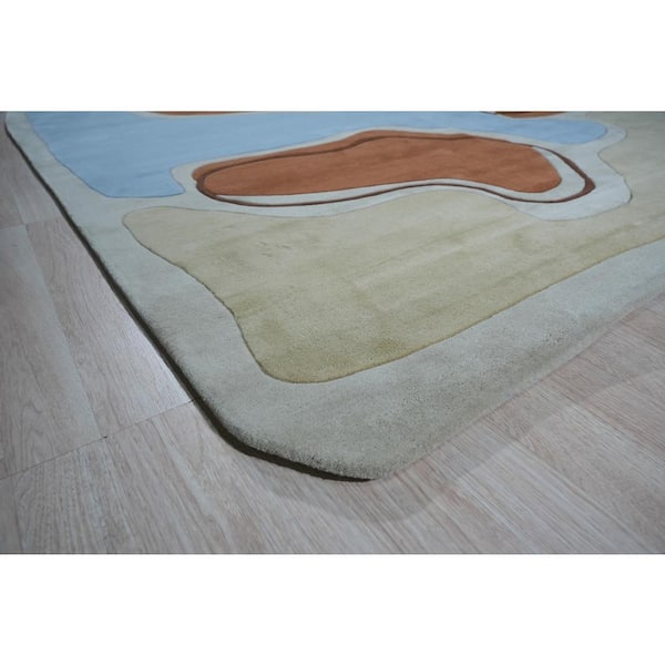 Blue Hand-Tufted Wool Contemporary Modern Rug 6 ft. x 9 ft., Area Rug