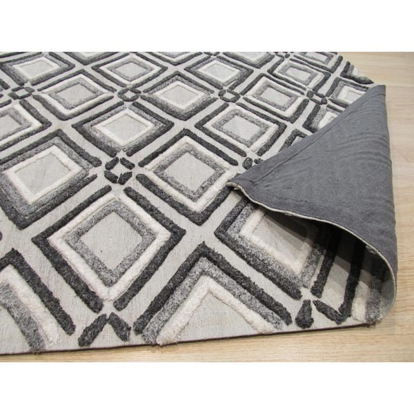 Gray 5 ft. x 8 ft. Handmade Wool Contemporary Geometric Raga Area Rug