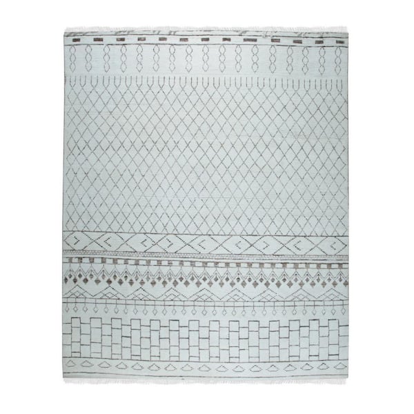 Ivory 10 ft. x 14 ft. Hand-Knotted Wool Classic Moroccan Design Rug Area Rug