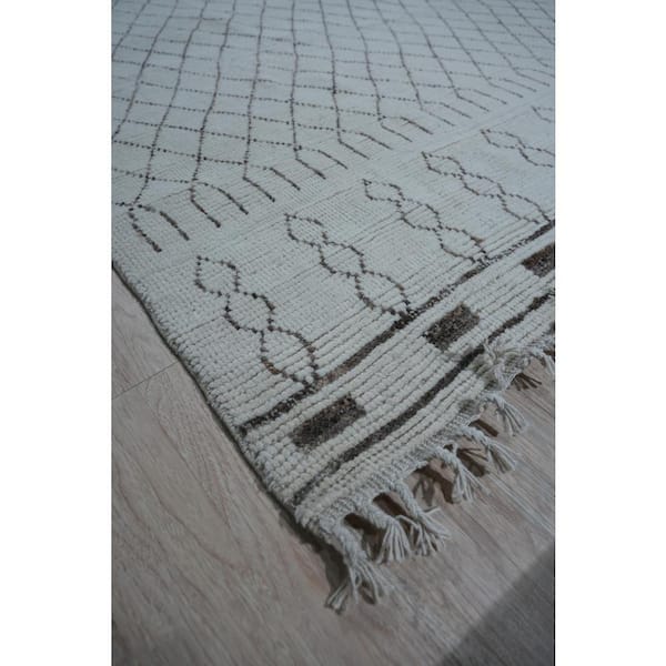 Ivory 8 ft. x 10 ft. Hand-Knotted Wool Classic Moroccan Design Rug Area Rug