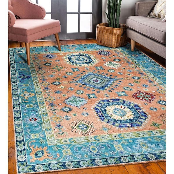 Rust/S.BLUE Hand Knotted Wool Traditional Kazak Collection Rug, 10' x 14', Area Rug