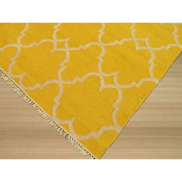 Yellow 7 ft. 9 in. x 9 ft. 9 in. Polyester Transitional Reversible Moroccan Outdoor Rug