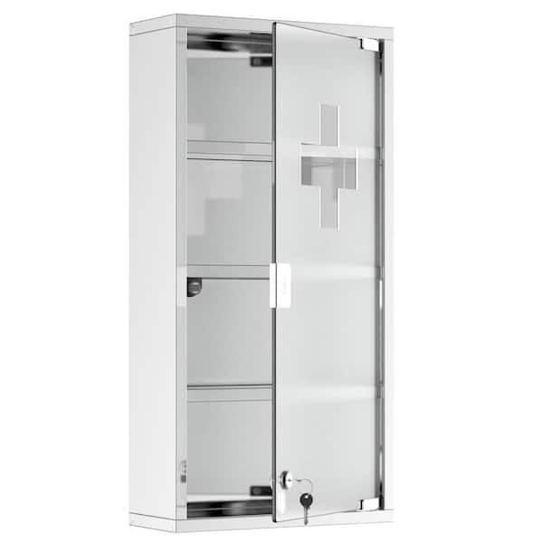 11.75 in. W x 23.5 in. H Rectangular Silver Stainless Steel Surface Mount Medicine Cabinet without Mirror with Lock