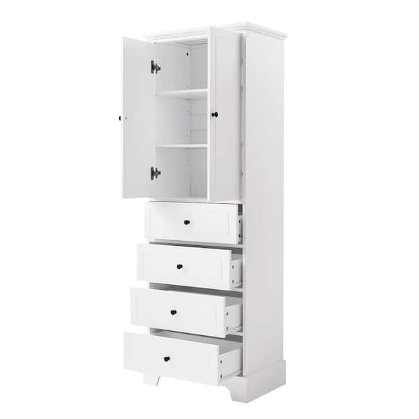 23.6 in. W x 15.7 in. D x 68.1 in. H White Freestanding Linen Cabinet Office Pantry Bathroom Storage Cabinet with Drawer