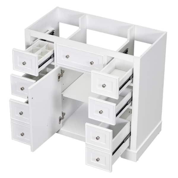 36 in. W x 18 in. D x 33 in. H Bath Vanity Cabinet without Top in White with 6-Drawers and Door Storage Shelf