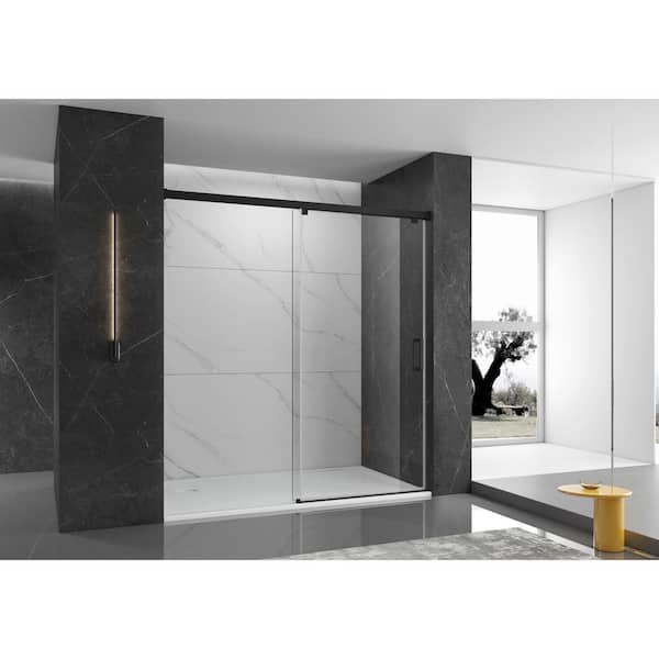 48 in. W x 76 in. H Single Sliding Frameless Shower Door in Matte Black Finish with Clear Glass