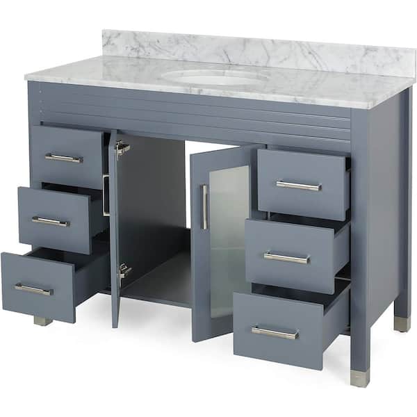 49 in. W x 22 in. D x 40 in. H Single Sink Freestanding Bath Vanity in Grey with White Marble Top and Storage Cabinet