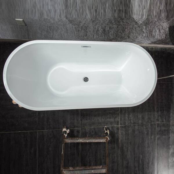 60 in. Acrylic Freestanding Flatbottom Non-Whirlpool Bathtub in White