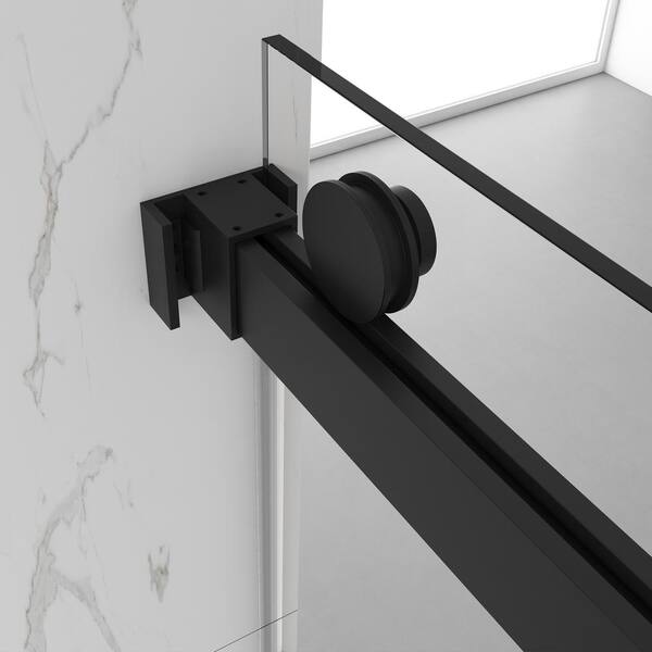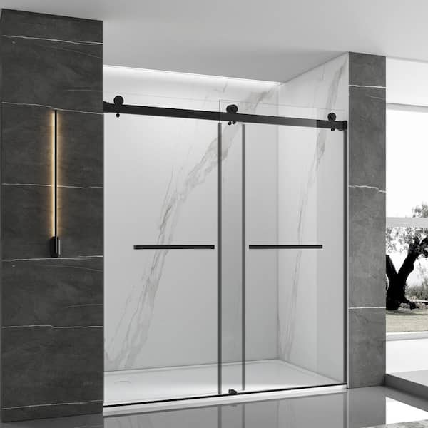 60 in. W x 76 in. H Double Sliding Frameless Shower Door in Matte Black Finish with Clear Glass