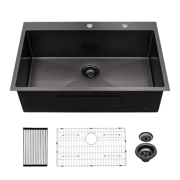 Black 16 Gauge Stainless Steel 30 in. Single Bowl Undermount Workstation Kitchen Sink with Bottom Grid