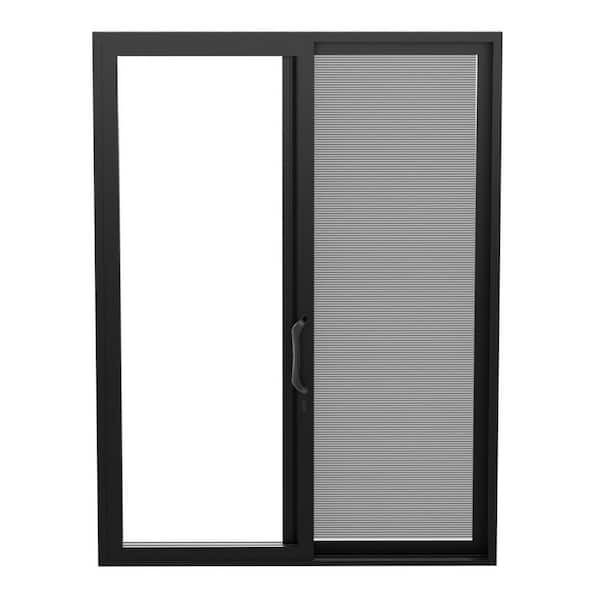 72 in. x 96 in. Matte Black Universal Handing Aluminum Sliding Patio Door with Aluminum Frame and Lockset