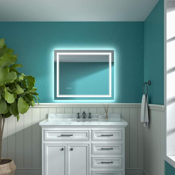 30 in. W x 36 in. H Medium Rectangular Frameless Dimmable Anti-Fog LED Wall Bathroom Vanity Mirror in Silver