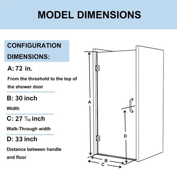30 in. W x 72 in. H Frameless Pivot Hinged Shower Door in Black with Handle and 5/16 in. (8 mm) Clear Glass
