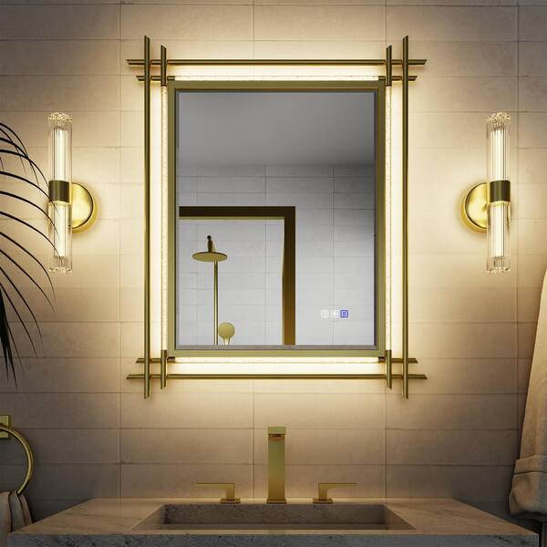 40 in. W x 32 in. H Rectangular Acrylic Framed Wall LED Bathroom Vanity Mirror with Anti-Fog in Gold