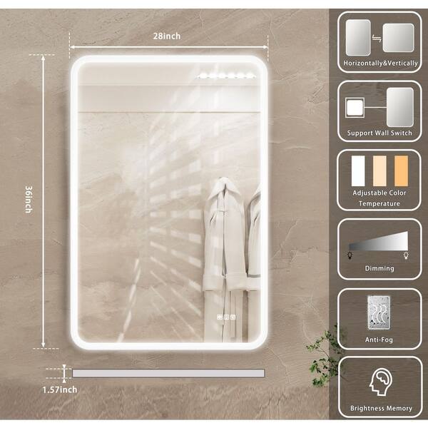 55 in. W x 36 in. H Rectangular Framed Wall LED Bathroom Vanity Mirror with Dimmable LED Bathroom Mirror in White