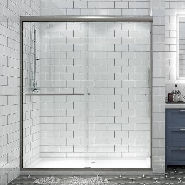 60 in. W x 70 in. H Sliding Framed Shower Door in Nickel Finish with Clear Glass