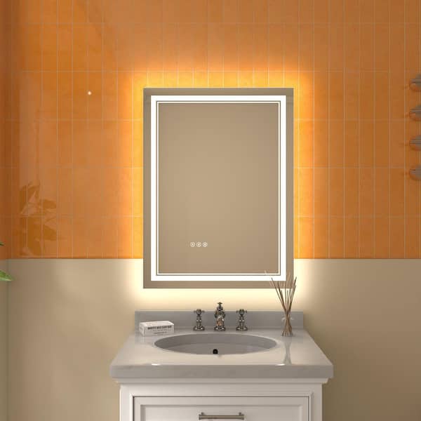 Derrin 24 in. W x 32 in. H Medium Rectangular Frameless Anti-Fog LED Wall Bathroom Vanity Mirror in Silver 5000k