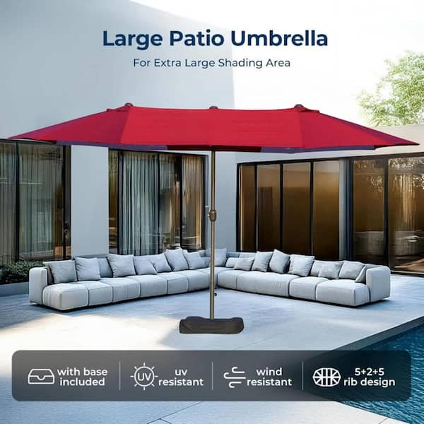 15 ft. Double-Sided Patio Umbrella with Crank-Sun Protection for Pool, Deck & Outdoor (Wine Red)