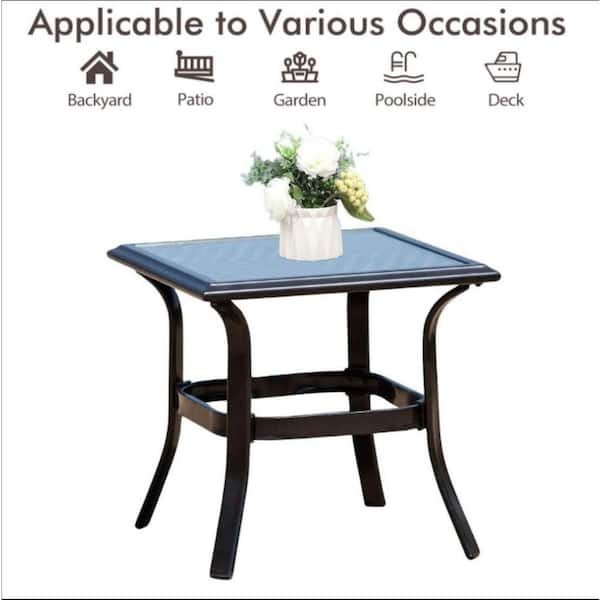 18.9 in. Outdoor Wicker Side Table with Tempered Glass Top-Weather-Resistant Patio Garden Balcony Accent Table