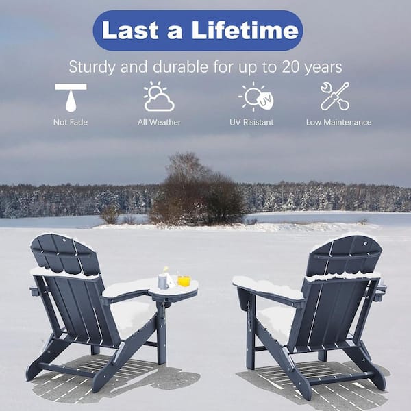 3-Piece Foldable Adirondack Chair Set w/Side Table, Polyethylene-Heavy-Duty All-Weather Patio Furniture (380 lb. Cap)