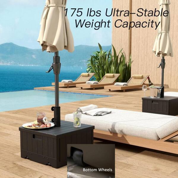 3-in-1 Outdoor Patio Umbrella Base Duty Rolling Base with Planter Side Table, 175lbs Capacity, Fits 1.5-2" Poles, Brown